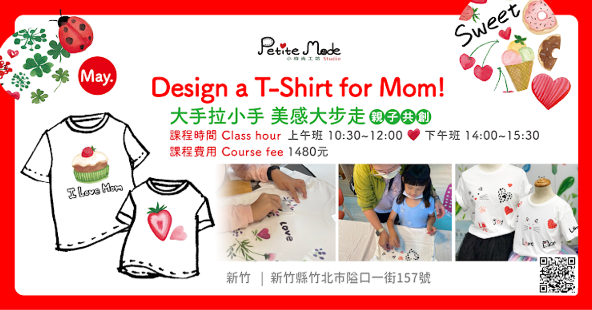 適合親子共創或是兄弟姊妹共創 ※一場活動可以設計兩件T恤帶回家 課程簡介:從主題引導,進入色彩引導到設計執行,將手感風格的主題圖樣進行構圖設計,透過熱轉印技術,完成屬於自己的T恤 美感養成是一次次手、眼、腦的探索與累積 我們喜歡跟孩子一起走過這個旅程 讓我們一起大手拉小手 美感大步走 從主題發想、適合親子共創或是兄弟姊妹共創 ※一場活動可以設計兩件T恤帶回家 課程簡介:從主題引導,進入色彩引導到設計執行,將手感風格的主題圖樣進行構圖設計,透過熱轉印技術,完成屬於自己的T恤 美感養成是一次次手、眼、腦的探索與累積 我們喜歡跟孩子一起走過這個旅程 讓我們一起大手拉小手 美感大步走 從主題發想、適合親子共創或是兄弟姊妹共創 ※一場活動可以設計兩件T恤帶回家 課程簡介:從主題引導,進入色彩引導到設計執行,將手感風格的主題圖樣進行構圖設計,透過熱轉印技術,完成屬於自己的T恤 美感養成是一次次手、眼、腦的探索與累積 我們喜歡跟孩子一起走過這個旅程 讓我們一起大手拉小手 美感大步走 從主題發想、