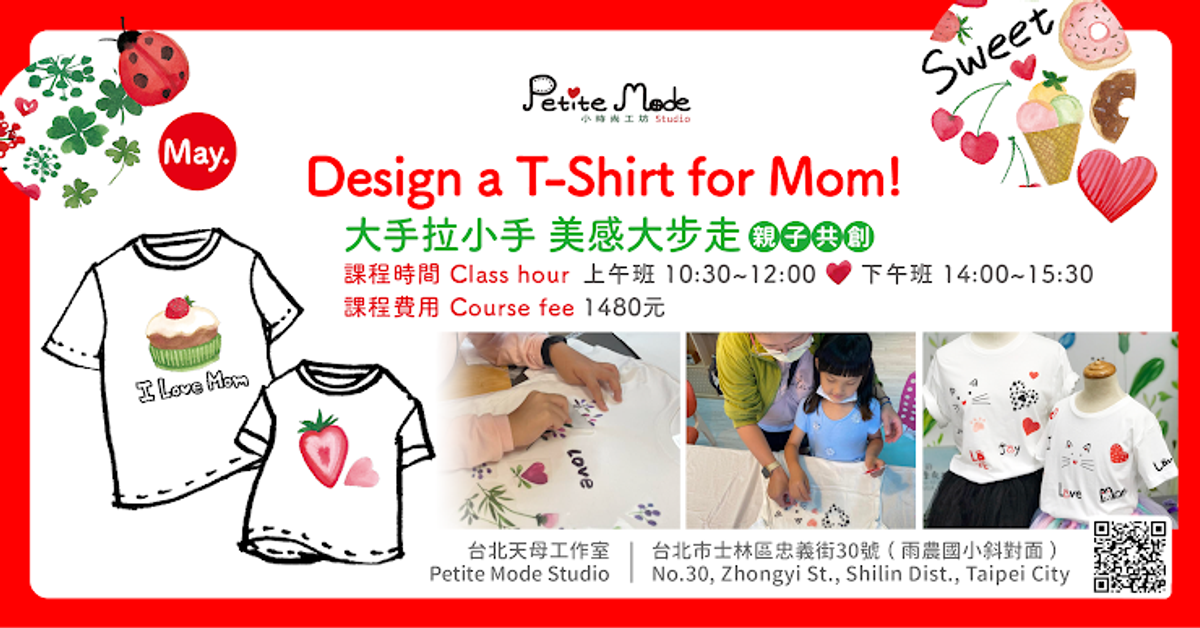 適合親子共創或是兄弟姊妹共創 ※一場活動可以設計兩件T恤帶回家 課程簡介:從主題引導,進入色彩引導到設計執行,將手感風格的主題圖樣進行構圖設計,透過熱轉印技術,完成屬於自己的T恤 美感養成是一次次手、眼、腦的探索與累積 我們喜歡跟孩子一起走過這個旅程? 讓我們一起大手拉小手 美感大步走 從主題發想、色彩引導、設計執行 創作一件自己的T恤 跟著小時尚一起來玩設計 美感從小培養 風格就此發芽 啟動孩子的設計原創力!適合親子共創或是兄弟姊妹共創 ※一場活動可以設計兩件T恤帶回家 課程簡介:從主題引導,進入色彩引導到設計執行,將手感風格的主題圖樣進行構圖設計,透過熱轉印技術,完成屬於自己的T恤 美感養成是一次次手、眼、腦的探索與累積 我們喜歡跟孩子一起走過這個旅程? 讓我們一起大手拉小手 美感大步走 從主題發想、色彩引導、設計執行 創作一件自己的T恤 跟著小時尚一起來玩設計 美感從小培養 風格就此發芽 啟動孩子的設計原創力!適合親子共創或是兄弟姊妹共創 ※一場活動可以設計兩件T恤帶回家 課程簡介:從主題引導,進入色彩引導到設計執行,將手感風格的主題圖樣進行構圖設計,透過熱轉印技術,完成屬於自己的T恤 美感養成是一次次手、眼、腦的探索與累積 我們喜歡跟孩子一起走過這個旅程? 讓我們一起大手拉小手 美感大步走 從主題發想、色彩引導、設計執行 創作一件自己的T恤 跟著小時尚一起來玩設計 美感從小培養 風格就此發芽 啟動孩子的設計原創力!