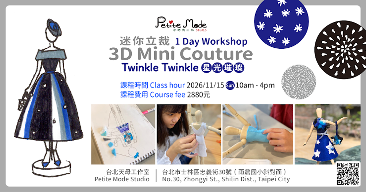 讓我們一起期待 這次孩子們又會帶來哪些設計元素呢? 從平面設計到立體構思,探索自然與創意的無限可能✨ Kids will learn 孩子將學到... ?Design Knowledge 設計邏輯 ?Hand Sewing Skill 手縫技巧 ?Body proportion 認識身體比例 ?3D Mini Couture 3D立裁知識 美感從小培養 風格就此發芽 啟動設計原創力!讓我們一起期待 這次孩子們又會帶來哪些設計元素呢? 從平面設計到立體構思,探索自然與創意的無限可能✨ Kids will learn 孩子將學到... ?Design Knowledge 設計邏輯 ?Hand Sewing Skill 手縫技巧 ?Body proportion 認識身體比例 ?3D Mini Couture 3D立裁知識 美感從小培養 風格就此發芽 啟動設計原創力!讓我們一起期待 這次孩子們又會帶來哪些設計元素呢? 從平面設計到立體構思,探索自然與創意的無限可能✨ Kids will learn 孩子將學到... ?Design Knowledge 設計邏輯 ?Hand Sewing Skill 手縫技巧 ?Body proportion 認識身體比例 ?3D Mini Couture 3D立裁知識 美感從小培養 風格就此發芽 啟動設計原創力!